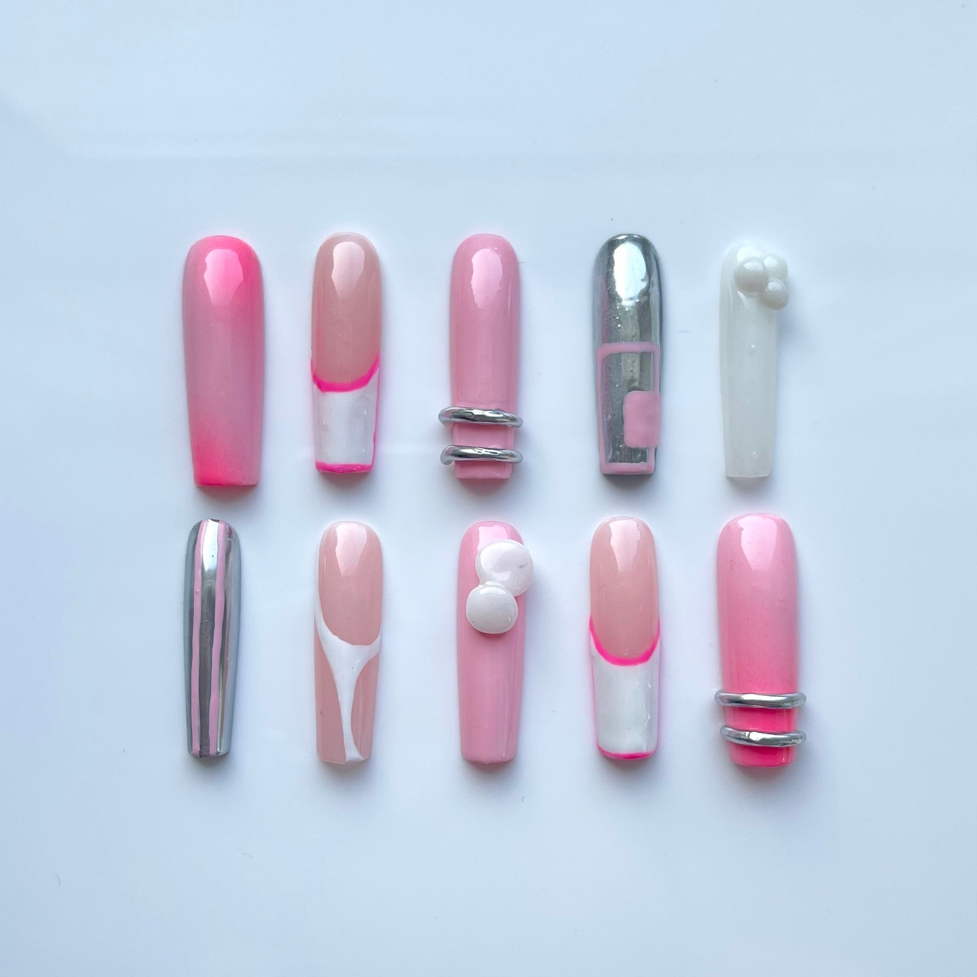 1-3 weeks: Apply a drop of nail glue to both your nail and press-ons. Apply downward at a 45 degree angle. Press down firmly for at least 10 seconds.